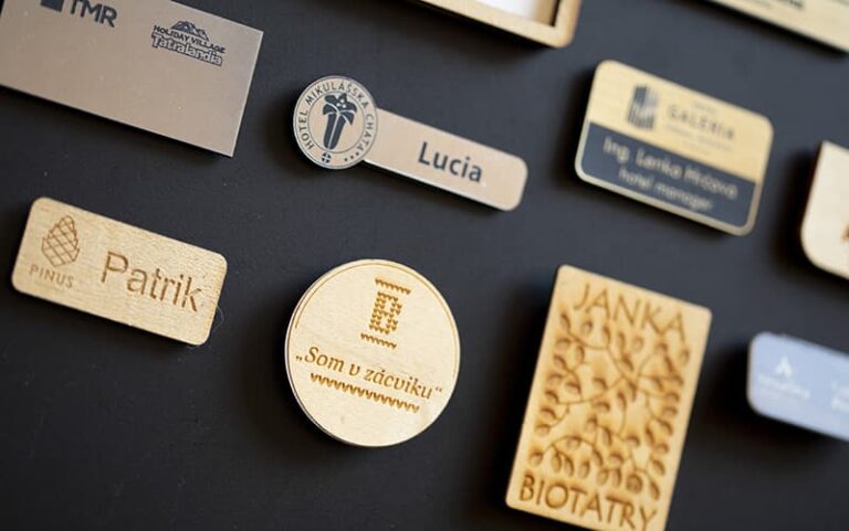 Personalizované menovky na oblečenie či stôl dodávajú profesionálny vzhľad na podujatiach a v kancelárii.